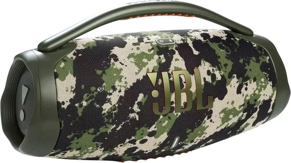 Корпус колонки JBL Boombox 3 защищен от влаги в соответствии с IP67. Покрытие корпуса специальной тканью не позволяет влаге и пыли проникать внутрь. Особенность устройства в оснащении аккумулятором емкостью 10000 мА·ч. Это позволяет колонке звучать до 24 без перерыва. Она поддерживает два канала подключения ‒ через Bluetooth и AUX-порт.