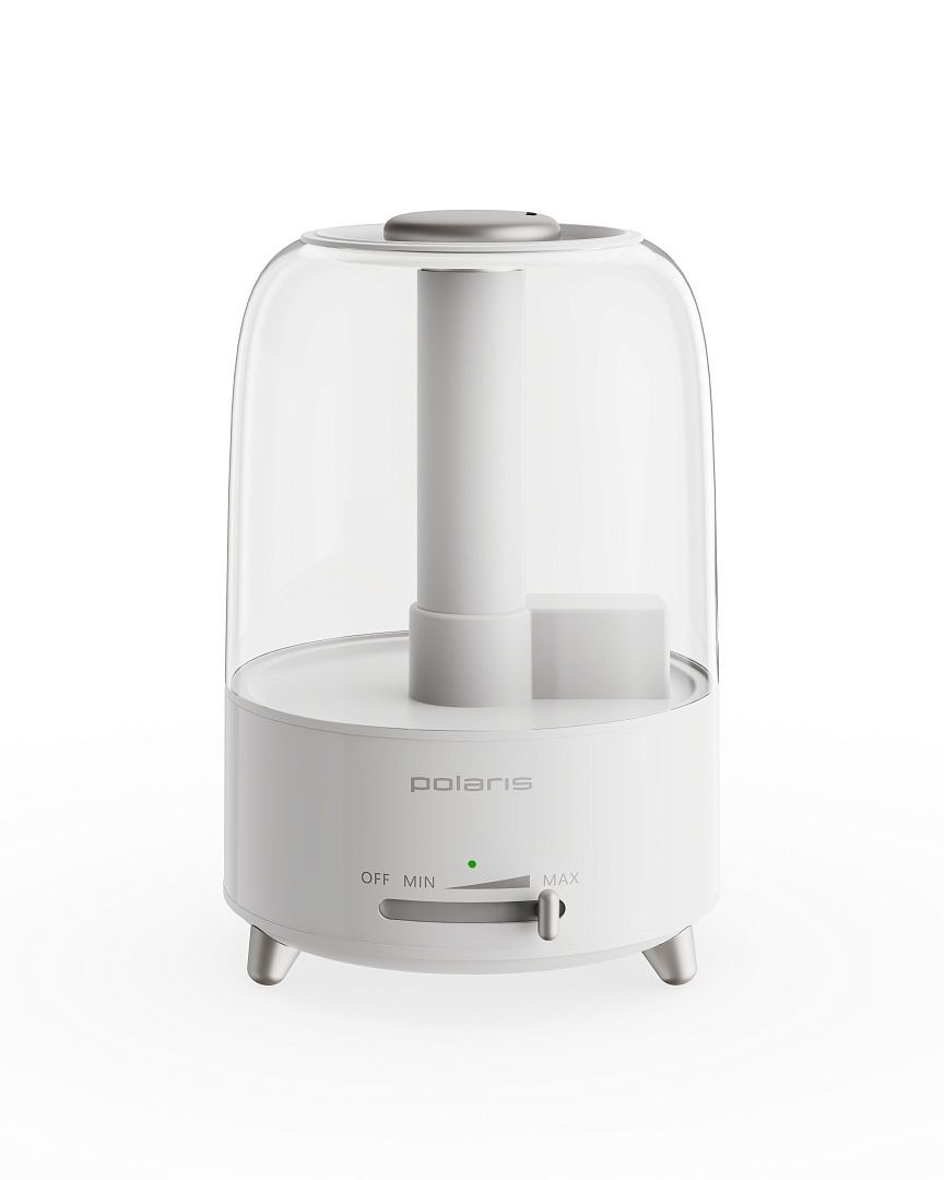 Увлажнитель воздуха Polaris PUH 4305 отличает невысокая скорость испарения 300 мл/ч. Автономная работа устройства возможна на протяжении 20 ч. При отсутствии жидкости срабатывает защитная технология, которая выключает ассистента. Механическая панель открывает доступ к параметрам.